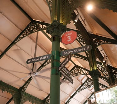 In the quiet lull between rushes at Lau Pa Sat, the beautiful iconic hawker centre in Singapore, the space softens into something more intimate. Slower pace, more relaxing moments, quiet solo diners, midday break of office workers. Amid it all, the gentle chime of the bells drifts through the space, adding a calm, almost nostalgic rhythm to the afternoon.
